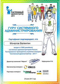 В 2011 году, в ходе ежегодного всероссийского конкурса «Системный Администратор», один из специалистов компании Help-GROUP получил титул «Гуру системного администрирования» и вошел в список 1000 лучших системных администраторов России. Стандартам качества работы наших сотрудников уделяется пристальное внимание – мы привлекаем только способных к обучению в условиях реального рынка специалистов.